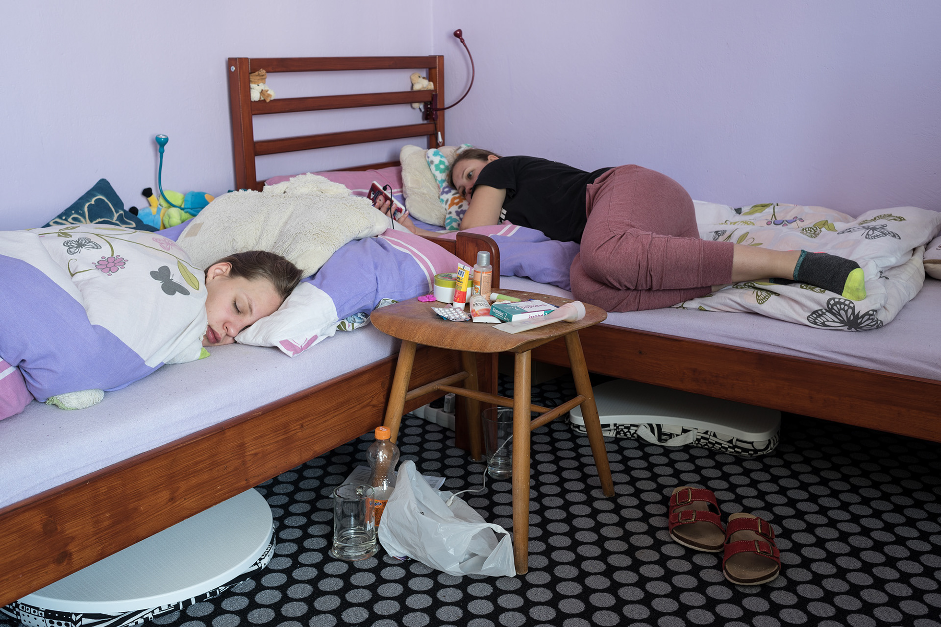 Říká se, že dvojčata k sobě mají blíž a jejich sourozenecká vazba je mnohem silnější. Jejich vztah vzniká od sedmnáctého týdne těhotenství, kdy se v těle matky vzájemně dotýkají a poznávají. Na svět se rodí v rozmezí několika málo minut a zajímavé je, že mají i stejnou DNA. Na dvojčatech je cosi magického a pozoruhodného. Podobně se chovají, mluví i vypadají, společně sdílejí a prožívají radosti i bolesti. Jejich svět je pro mě fascinující, občas mám pocit, že spolu ani nepotřebují mluvit, aby myslely na to samé. Fotografiemi se snažím zachytit vazbu dvojčat–mladých žen v době, kdy se osamostatňují a začínají si budovat vlastní život.